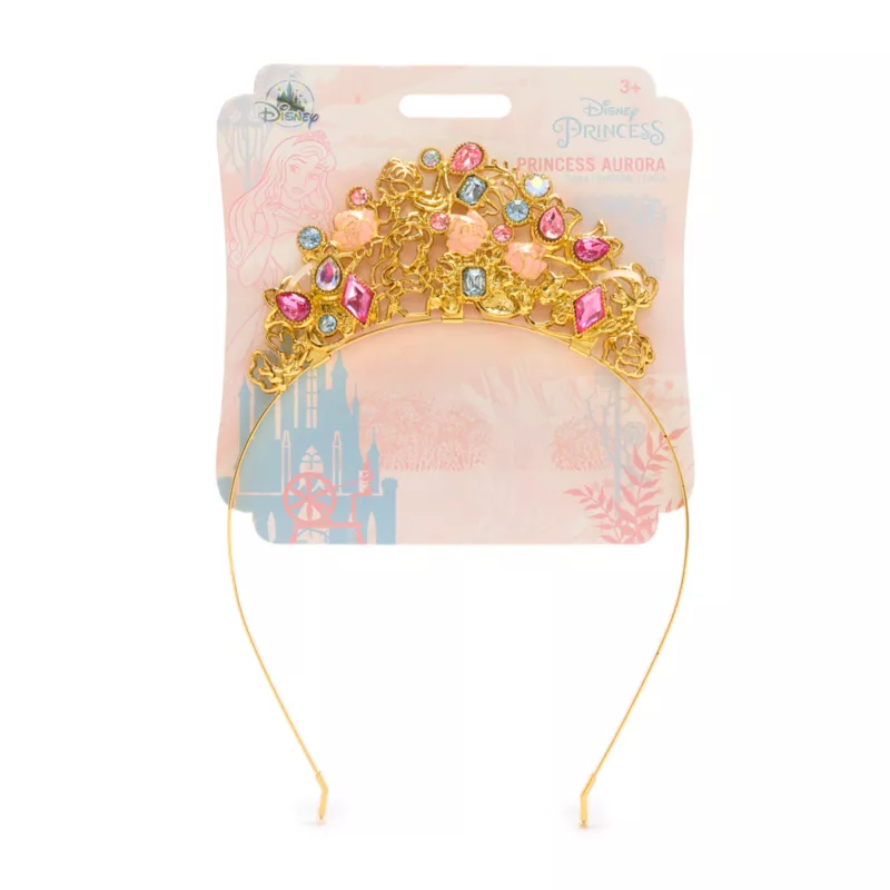 Attend the royal coronation of Princess Aurora as she tops-off her ensemble with this bejewelled golden tiara. Aurora and rose filigree highlight the crowning glory of any Sleeping Beauty costume.