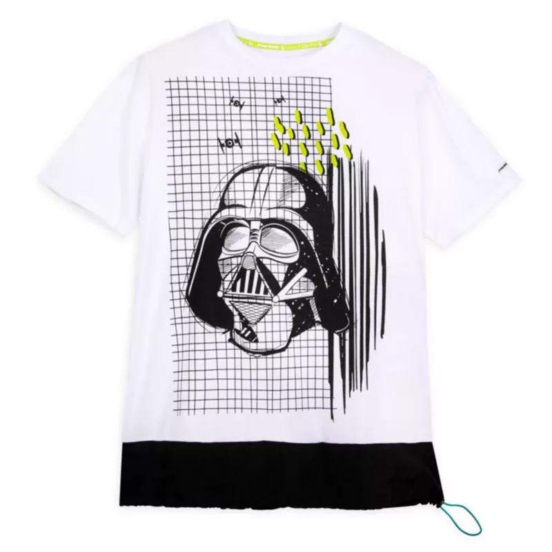 Be the ruler of the galaxy and style with this fashionable tee. It features an adjustable cinched hem and sketch-style artwork of Darth Vader with TIE fighter spaceships with a grid pattern behind him – perfect for showing off your allegiance to the dark side.
