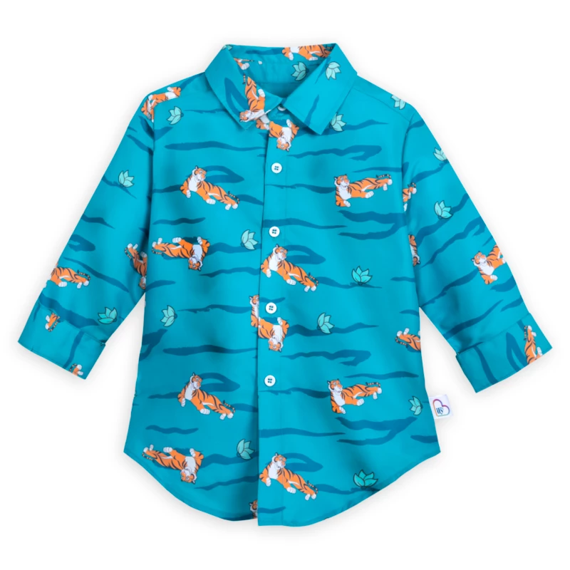 Layer on the fun with this Disney ily 4EVER two-piece set inspired by Jasmine featuring a sleeveless t-shirt and coordinating woven shirt. The pretty tee features screen art of a glittery night sky over Jasmine’s palace in Disney’s Aladdin. The soft woven shirt has an allover print starring sweet Rajah amid lotus blossoms. Featuring a special Disney ily 4EVER tag, this outfit can be worn together or separately for an altogether adorable look.