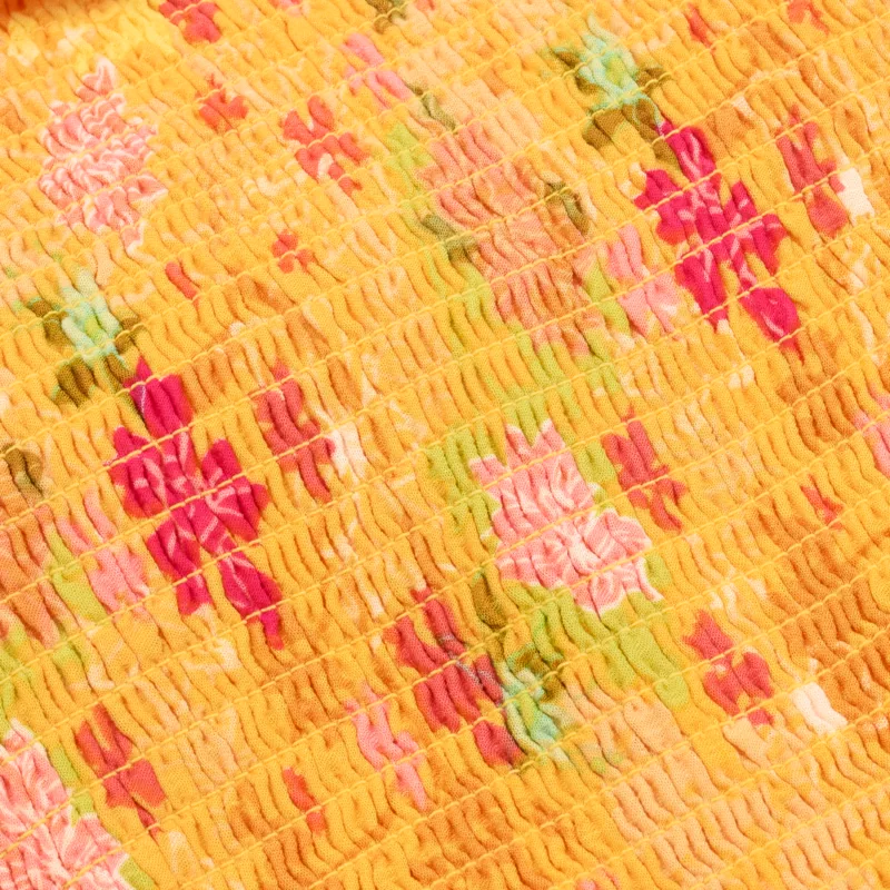 - Ruffled trims on straps, neck and waist