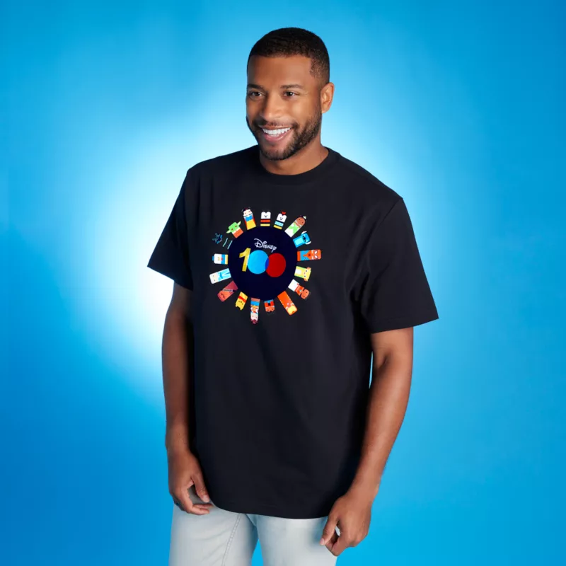 A colourful collection of characters from the worlds of Disney, Pixar, Marvel and Star Wars are united on this kids’ cotton tee created as part of the Disney100 celebration. Stylized screen art renditions of 17 characters that include Mickey, Snow White, Black Panther and Chewbacca circle the embroidered Disney100 logo, creating a fun top to honour the landmark occasion.