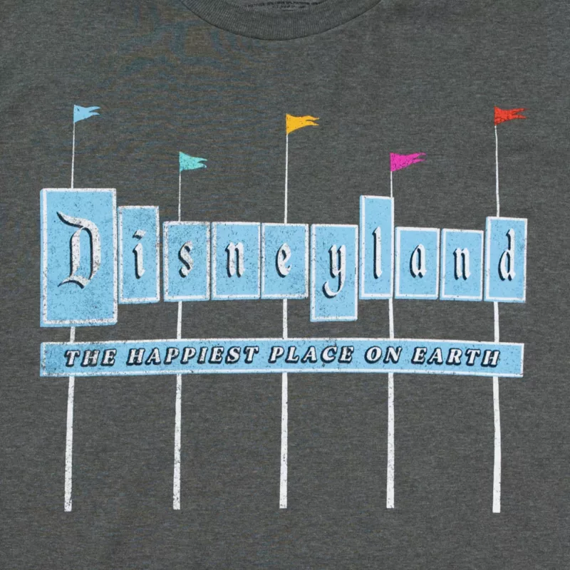 - Soft hand screen print of Disneyland Entrance Stand Up sign with “THE HAPPIEST PLACE ON EARTH” wording at the front