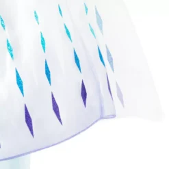 Empower her masquerade party appearance with Elsa’s stunning Snow Queen gown. Glittering filigree, sheer cape panels, and a pair of ice blue leggings make this frosty costume a formidable fashion statement.