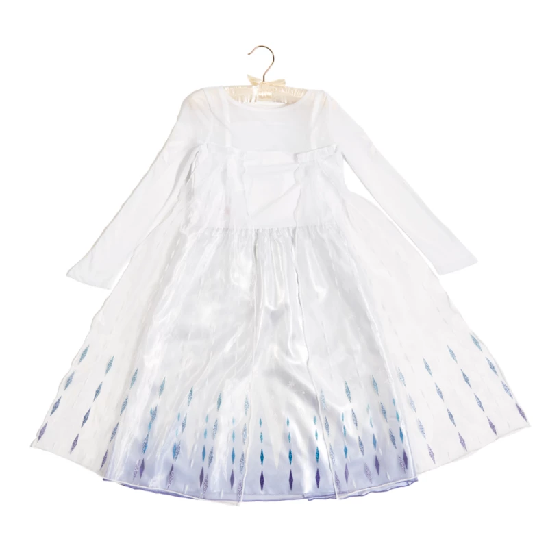 Let little ones channel the Snow Queen and rule the forest in this Elsa costume! The enchanting two piece design features a beautiful dress with a split organza cape, and a pair of pale blue trousers.