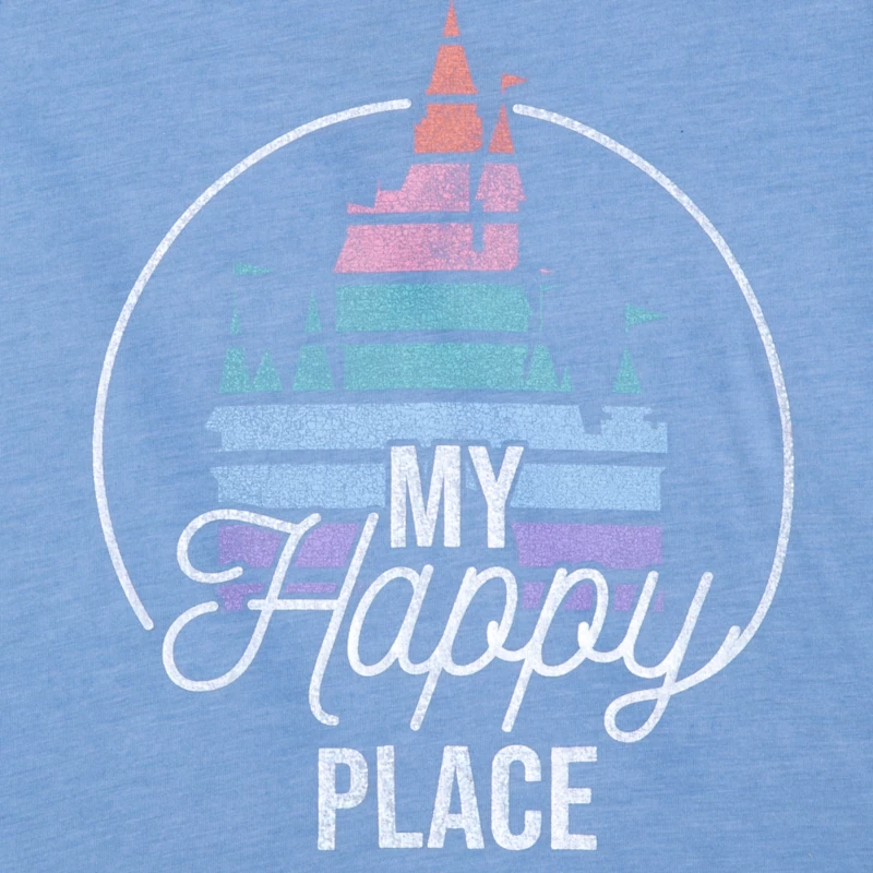 Take your Disney fan to their happy place with this cute t-shirt. Featuring a colourful design of the Fantasyland Castle, screen printed text and glittering details, this tee is perfect for your next Disney family vacation or park day.