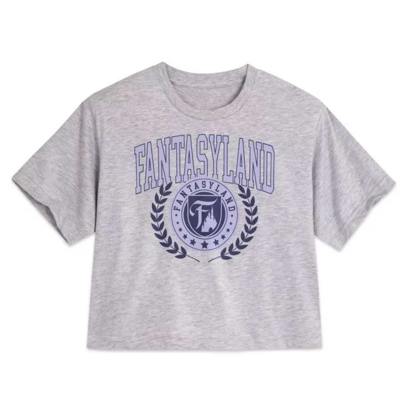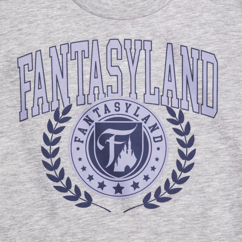 Storm the gates of the Magic Kingdom in this heathered, semi-cropped top with Fantasyland Crest, athletic block lettering, boxy fit and oversize sleeves. You’ll be comfy ever after!