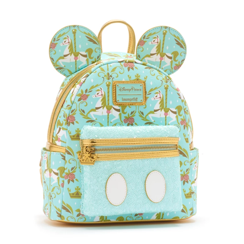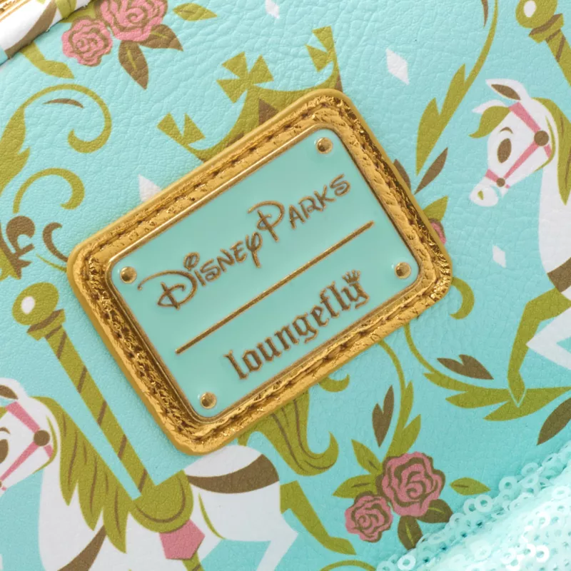 Step onto the carrousel you’re in for a royal ride with this charming Loungefly Mickey Mouse The Main Attraction Mini Backpack! Celebrating the 50th Anniversary of The Prince Charming Regal Carrousel, the backpack captures the fantasy of the Magic Kingdom Park attraction. Featuring an all-over print inspired by the ‘Prince Charming Regal Carrousel’ attraction at Disney Parks, Mickey icon ears and two, adjustable shoulder straps, you are sure to stand out on your daily adventures!