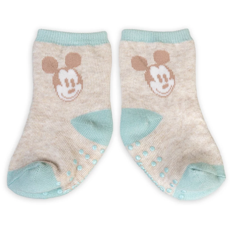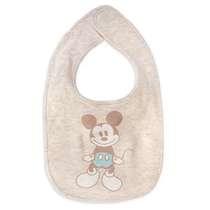 A smiling Mickey Mouse is featured on the socks while the matching bib will keep toes company with this cute coordinated set for your little one.
