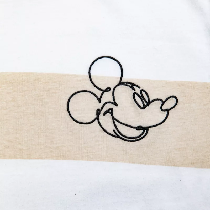 Sport a laidback look with this cream coloured Mickey Mouse Striped Crop T-shirt featuring a subtle embroidery of Mickey.