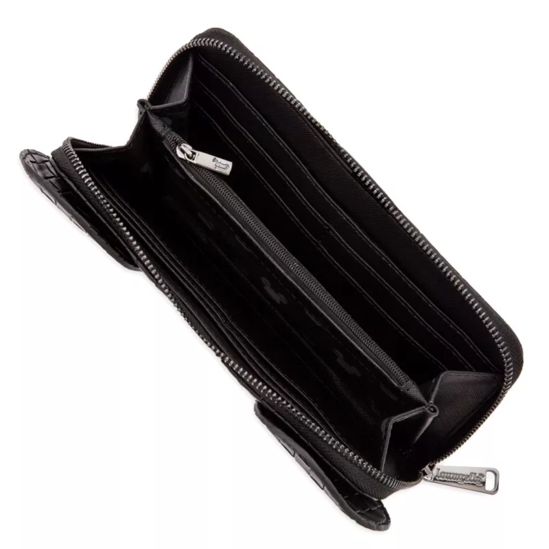 This trendy wallet by Loungefly is perfect for your next park day or Disney vacation. Featuring an allover woven design in simulated leather, 3D Mickey Mouse ears, with eight credit card pockets and two bifold compartments, this wallet will hold all your essentials in style.