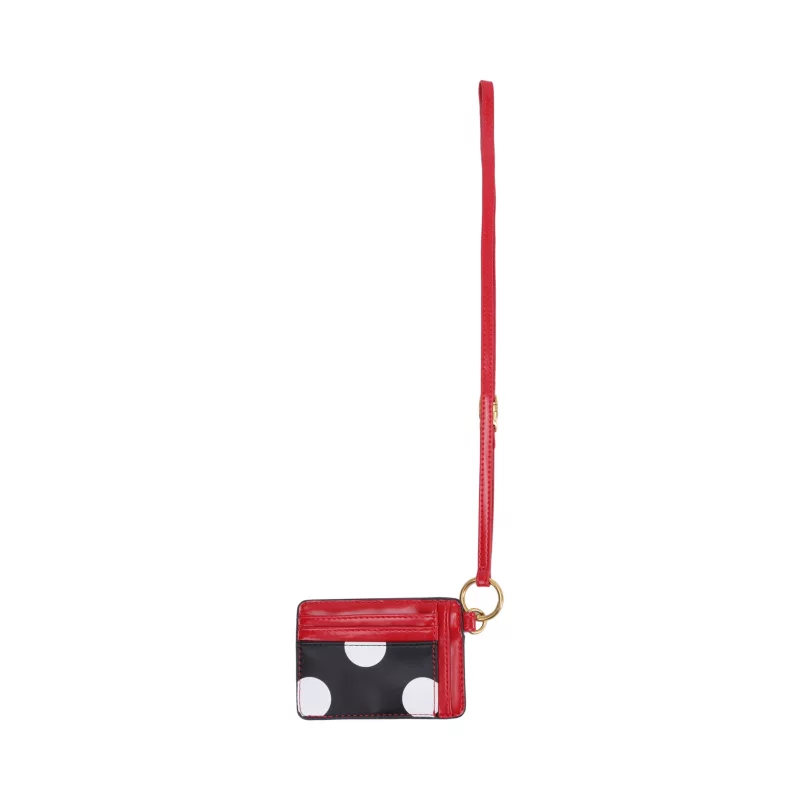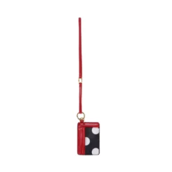 Shop in style with this red and black, Minnie Mouse Retro Polka Dot Card Case, featuring a 5-layer card design, detachable long straps and low-key bronze silhouette finish. You’re sure to turn heads!
