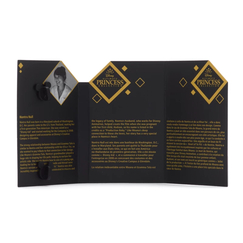 Designed by Disney artist, Nontra Null, this stunning limited release Moana pin features the Disney Princess rendered in a colourful palette, plus a clear hinged door design on the front.