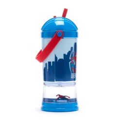 Keep your Spidey senses refreshed with this dynamic tumbler! The liquid-filled base contains glitter and a little Spider-Man figurine, while the outside features a city skyline. The domed lid includes a built-in straw and a carry handle for added convenience.